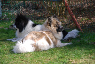 | 02.04.2017 | Der Winter ist vorbei Frühlingserwachen! Milo hat zwei weitere Deckakte gehabt mit Hope vom Elfenhain (Meggie; 2/2 Welpen) und Bounty vom Adelsbächle (Tilly; 5/2 Welpen). Siehe auch unter Verpaarungen. Unsere beiden Rüden genießen die ersten Sonnenstrahlen bei angenehmen Temperaturen! ![]() |